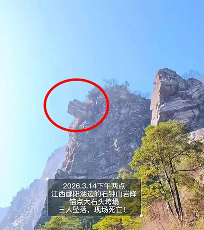 3月14日14时许,江西省九江市湖口县双钟镇雁列山附近发生一起户外岩降事故,造成3人死亡。 ...