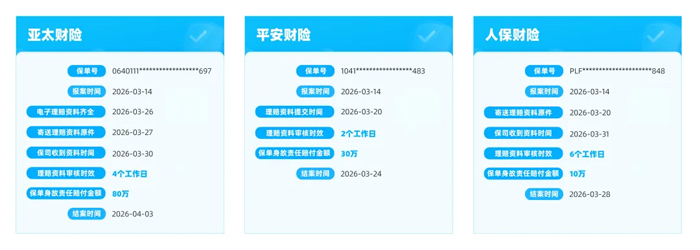 其中,最快一笔赔付从材料提交到赔付完成,只用了2个工作日。